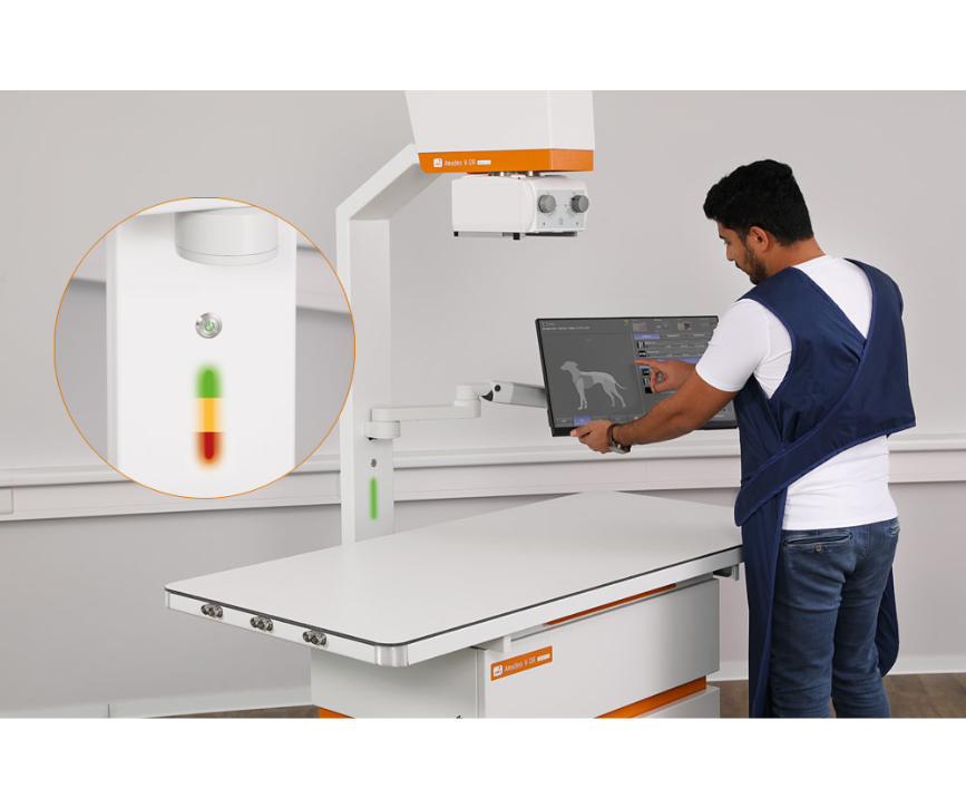 Amadeo V-DR mini II system – Ett utrymmesbesparande komplett röntgensystem för veterinärmedicin med vridbar monitor och med anslutning till standarduttag. Har en rörlig bordsskiva för röntgenundersökning av smådjur. En stor integrerad låda med två fack ger tillräckligt med utrymme för t.ex. positioneringshjälpmedel och smådelar. Högfrekvensgeneratorn på 32 kW är även den direkt integrerad i röntgenbordet och har ett vridbart ljusvisir.