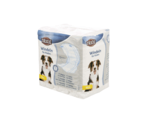 Blöjor för hanhundar i tre olika storlekar.