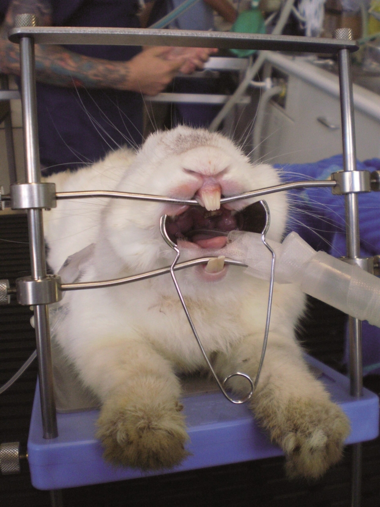 Hjälpmedel för att undersöka och behandla munhåla hos gnagare under anestesi, utan assistent och i bästa position.