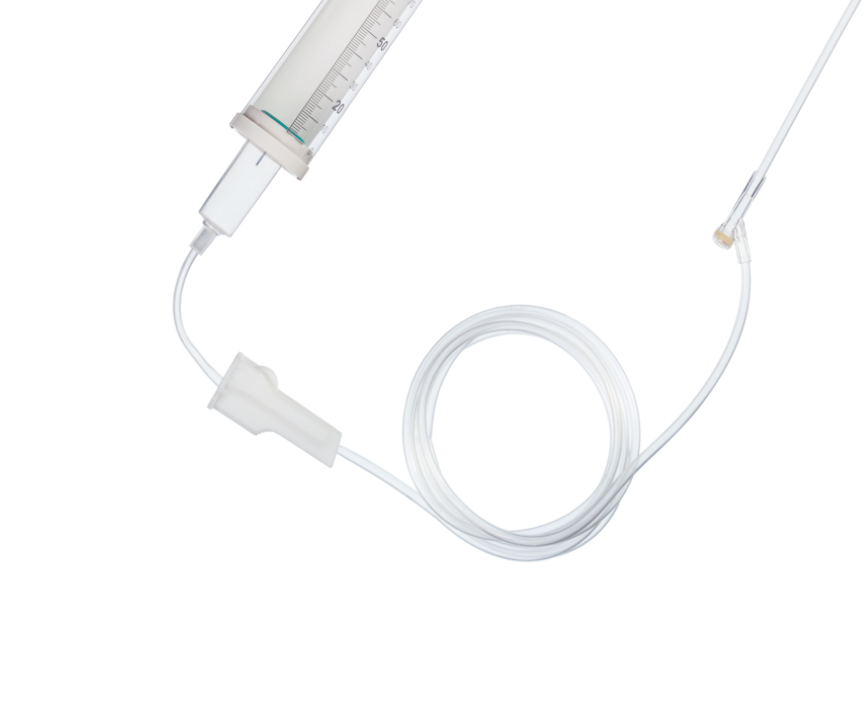 Volymkontroll för IV administration set med doserings behållare 150 ml. Lämplig för gravitations infusioner.Flexibel, transparent droppkammare med mikro dropper, 60 droppar = 1 ml ± 0,1 ml (aqua dist.)