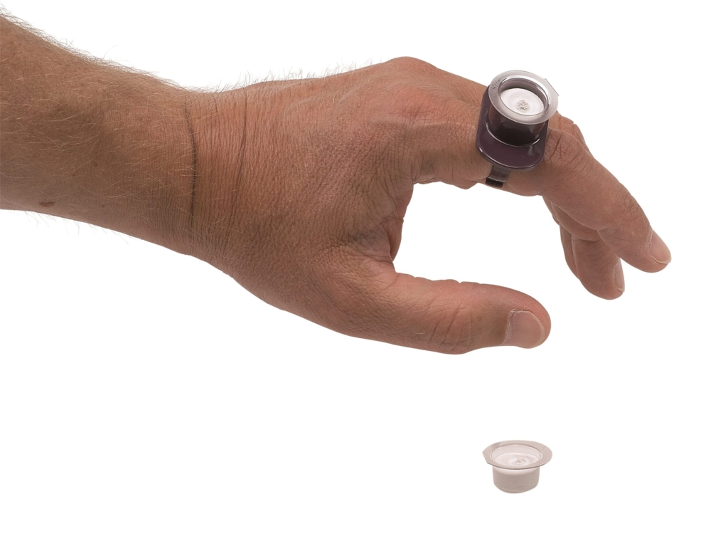 Med fingerhållare.