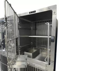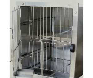 Kattbur i kompakt design tillverkad i högkvalitativ rostfritt stål. Tack vare det glidbara tvångsgallret kan katten stressfritt, enkelt och säkert hållas på plats under undersökningar och behandlingar utan att orsaka skada.