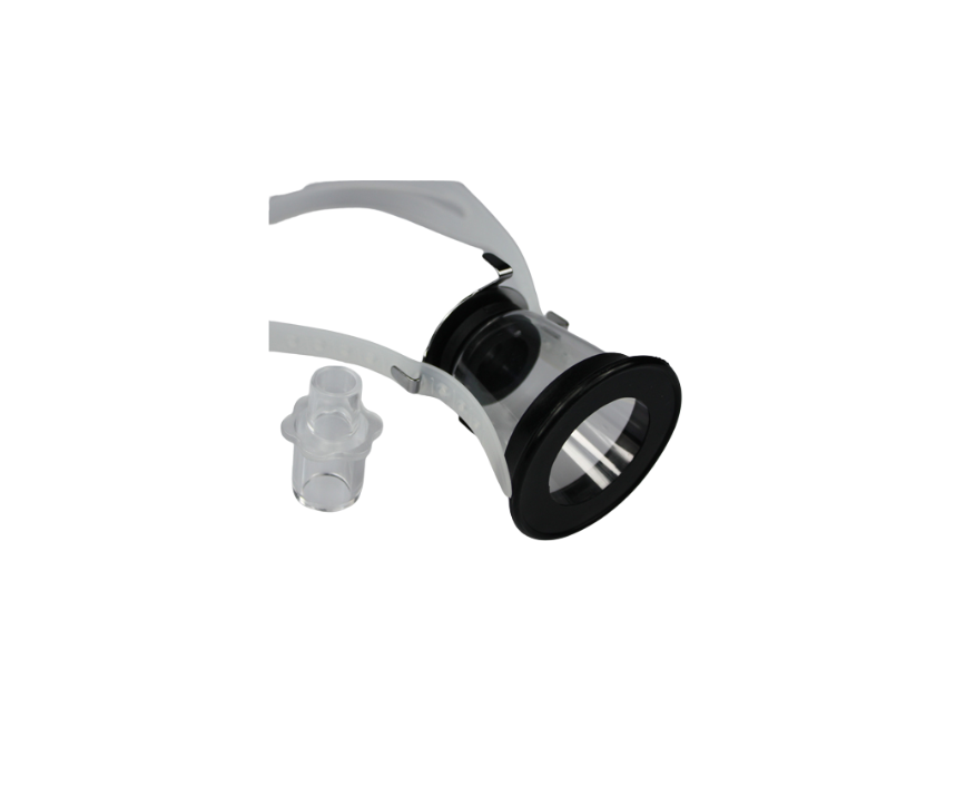 Gjord av robust plastmaterial med gummipackning för att få god tätning mot patienten