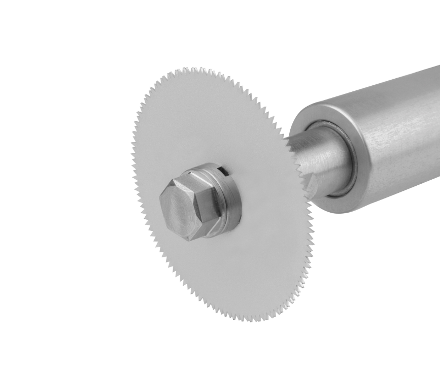 Huvudstycket är avtagbart och autoklaverbart. Säker och exakt såg är tystgående och har låg vikt Levereras med 2 hårdmetallsågblad 50 mm respektive 65 mm.