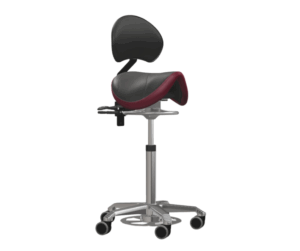 Sadelstol Amazone balance med ryggstöd och fotaktivator.