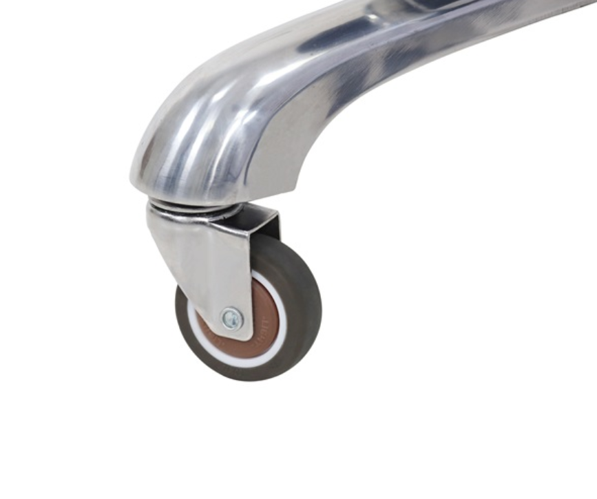 Justera höjd och lutning med hjälp av spak under sitsen. De utmärkta gummihjulen rullar smidigt och är lätta att rengöra.