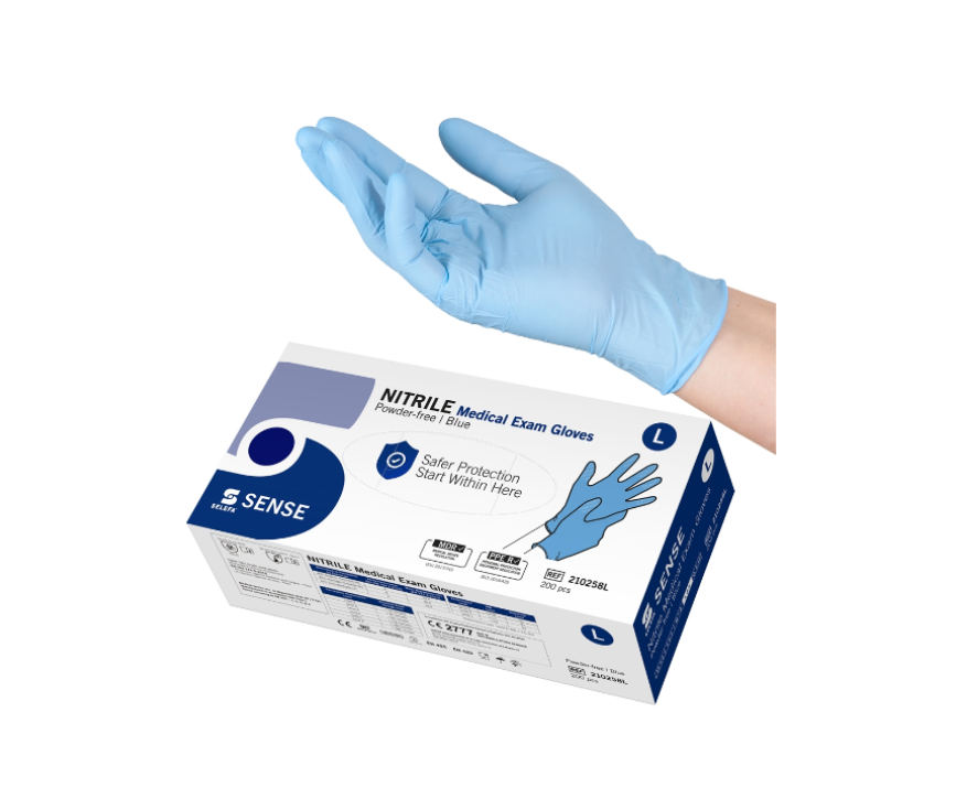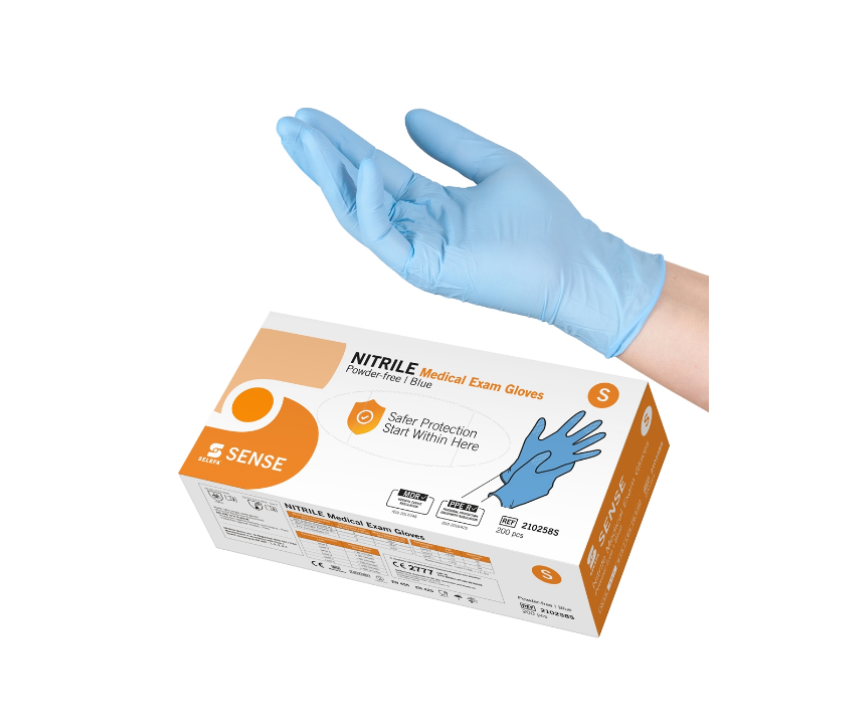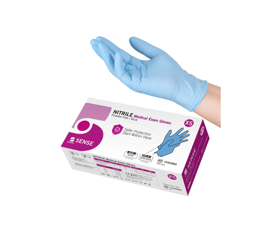 Selefa nitrilhandskar SENSE är en blå, vattentät undersöknings- och skyddshandske mot minimala kemiska risker och mikroorganismer (Complex Design). Nitrilhandsken är tunn, passar båda händer och är lätt att ta på och av. Den har en utmärkt passform och en rullkant som ger extra styrka åt kragen. Handsken ger god taktil känslighet och är utformad med mikrotexturerade fingertoppar som ger ett säkert grepp i både våt och torr miljö.