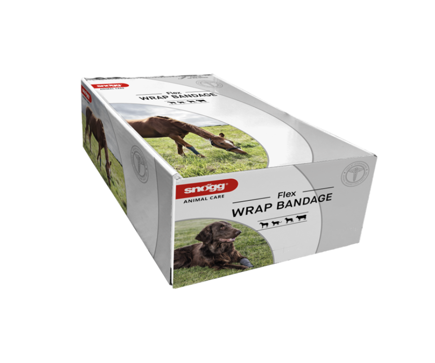 Snögg Flex Wrap Bandage – Ett flexibelt och elastiskt självhäftande textilbandage. Fastnar inte i vare sig päls, hud eller sår och är idealiskt för fixering av kompresser och självhäftande skumförband. Skyddar mot smuts och fukt.