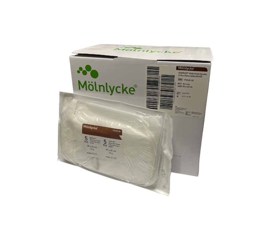 Röntgentät tråd invävd i varje kompress