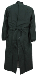Undersökningsrock i PU/polyamid (45/55%) med 3 fickor på framsida. Resår vid ärmslutet. Har fleeceklädd krage och knytband i midjan. Vikt 170gr.